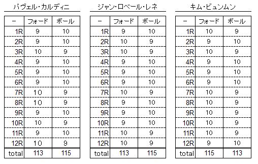 12回3-0判定勝ち(117-110×2,115-112×1)
